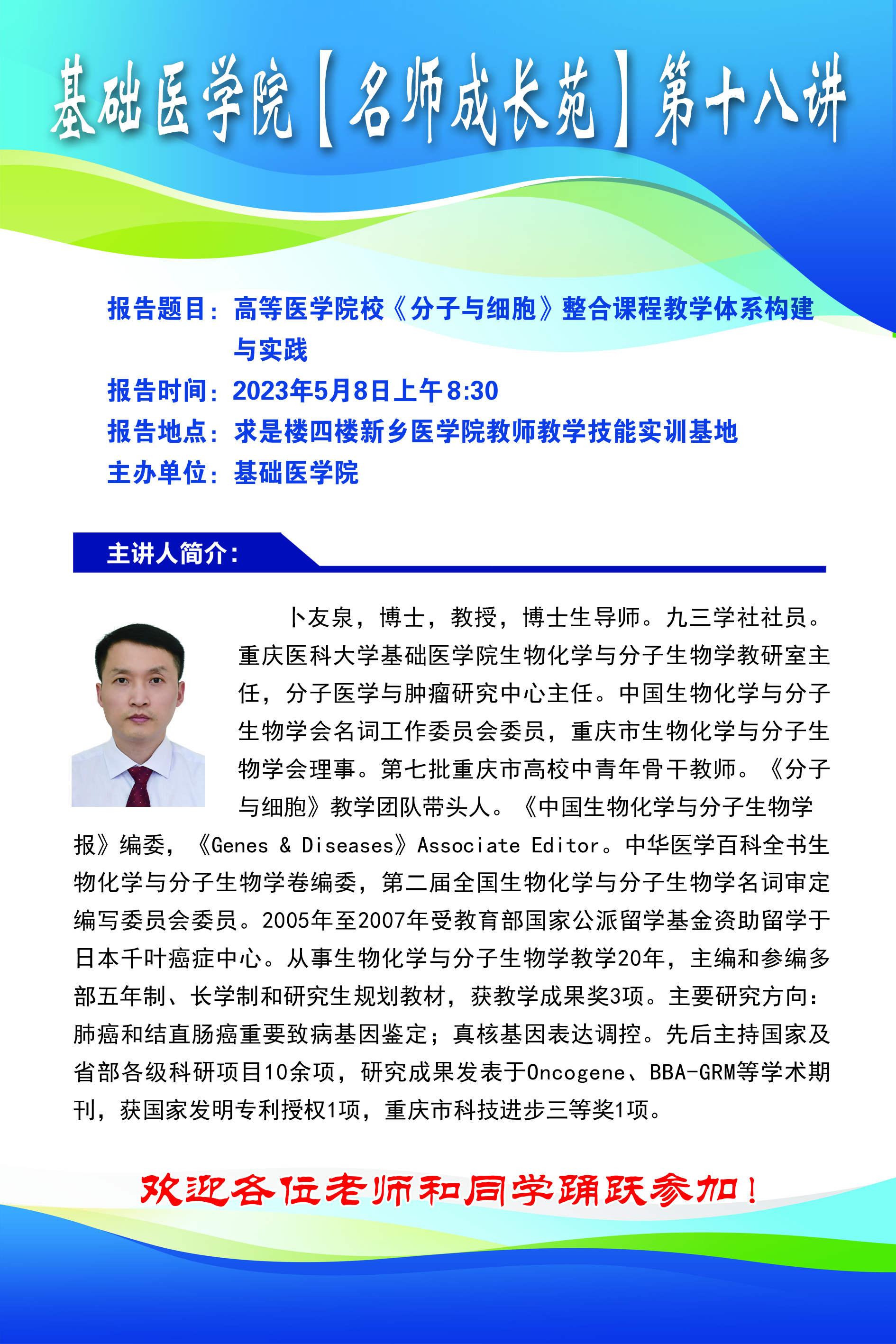 基础医学院学术活动月系列学术报告暨“卓越论坛”系列讲座第十八期