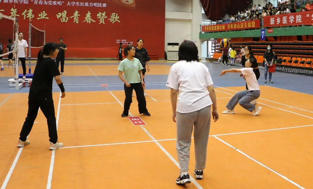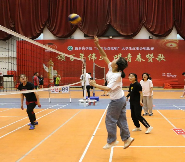 “华光杯”女子排球的决赛是由基础医学院排球队对阵医学工程学院和生命科学技术学院联合排球队。双方一上场便剑拔弩张、互不相让。在比赛场上,队员们相互配合,沉着冷静,积极拼搏,在赛场上活力四射。场下的师生和啦啦队员也纷纷为自己的队伍加油呐喊,鼓掌助威,赛场气氛火热。在大家热情洋溢地舞动下,队员们士气更足,比赛更加热烈精彩。