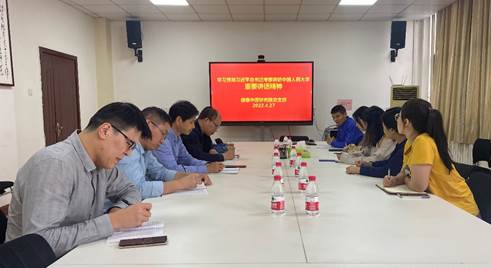 根据学校党委安排,按照学院党委要求,4月27日上午,健康中原研究院党支部组织学习贯彻习近平总书记考察调研中国人民大学重要讲话精神专题活动。我院全体教职工参加。