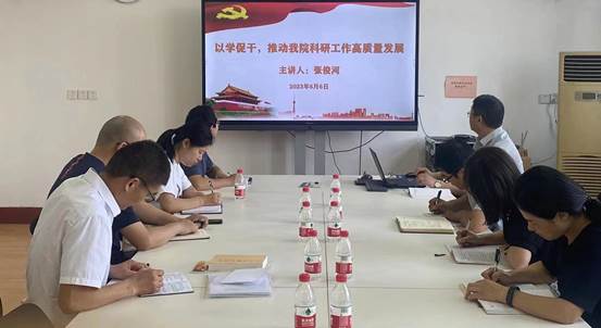 研究院副院长张俊河同志以“以学促干,推动我院科研高质量发展”为题目,给大家讲了党课。他指出,习近平总书记在主题教育动员会上指出,实干担当促进发展。要教育引导广大党员、干部胸怀“国之大者”,紧紧围绕新时代新征程党的中心任务,真抓实干、务求实效,聚焦问题、知难而进,以“时时放心不下”的责任感、积极担当作为的精气神为党和人民履好职、尽好责,以新气象新作为推动高质量发展取得新成效,依靠顽强斗争打开事业发展新天地。