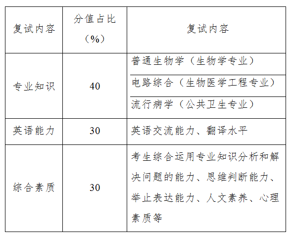 4. 接收报考专业为生物学、生物医学工程、公共卫生、公共卫生与预防医学、临床医学、医学技术、医学检验等专业的调剂考生。