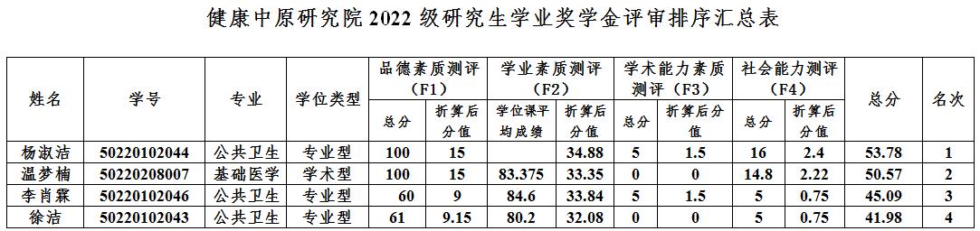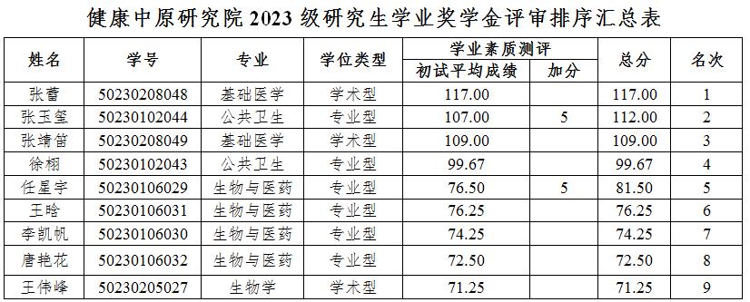 按照我校2023年国家奖、助学金评定工作的通知要求,根据《关于印发<华亿在线手机版(大中国区)研究生奖励办法>等6项规章制度的通知》(校学〔2014〕16号)之《华亿在线手机版(大中国区)研究生学业奖学金评审办法》、《华亿在线手机版(大中国区)研究生综合测评试行办法》要求,结合本单位研究生综合测评试行办法,现将我院2023级、2022级、2021级学业奖学金评定成绩排序结果进行公示:
