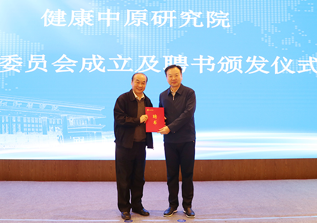 在健康中原研究院学术委员会成立仪式上,健康中原研究院负责人宣读了学术委员会成员名单,任文杰教授为与会委员颁发了聘书。