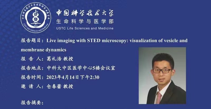 2023年4月14日,葛礼浩教授应中国科学技术大学仓春蕾教授邀请,前往中国科学技术大学生命科学与医学部进行学术交流。