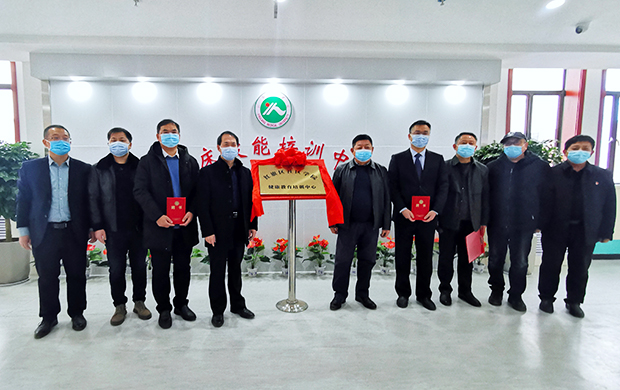 雒保军、邵自卿一同为健康教育培训中心揭牌;邵自卿向我校林俊堂教授、常海敏副教授颁发红旗区社区学院兼职教授聘任证书。