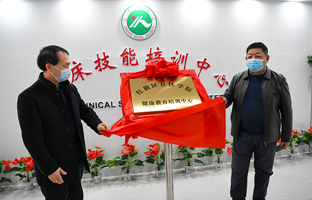 1月28日上午,由新乡市红旗区和我校联合共建的社区健康教育培训中心揭牌仪式在学校科技楼六楼临床技能培训中心举行。校党委委员、副校长雒保军,红旗区副区长邵自卿,红旗区教体文旅局党组书记、局长段红征出席揭牌仪式,教务处处长林俊堂、副处长常海敏,各科室代表及红旗区教体文旅局等部门相关负责人参加仪式。揭牌仪式由段红征主持。