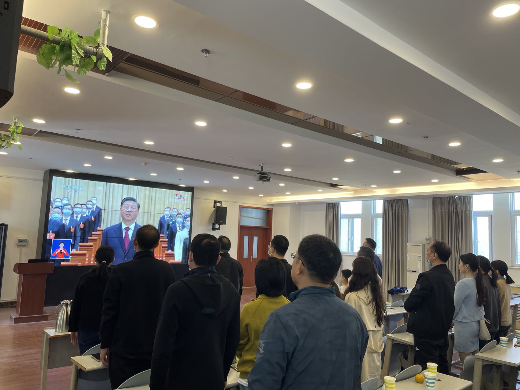 10月16日上午,教务处全体教职工在科技楼临床技能培训中心会场集中收看党的二十大开幕会。大家同看一个画面,共听一个声音,共同见证中国共产党的又一伟大历史时刻。全体成员聚精会神认真聆听大会报告,深刻感受大会的庄重热烈氛围,深刻体悟大会凝聚起的磅礴力量。
