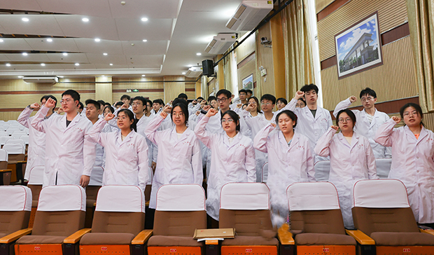 全体2022级菁英医师班60名学生以集体宣誓的方式重温了《医学生誓词》。