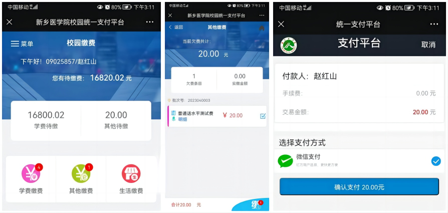 第三步:登录成功后,点击其他缴费。核对收费项目(普通话水平测试费)和金额,确认无误后点击右下角缴费图标,进入微信支付流程“确认支付”。