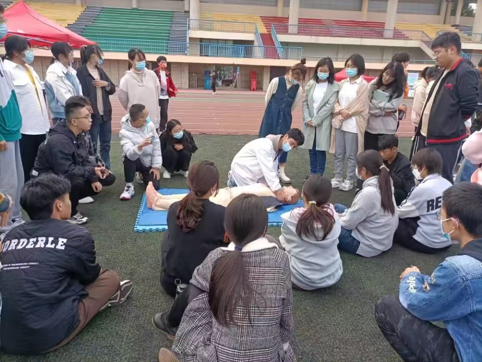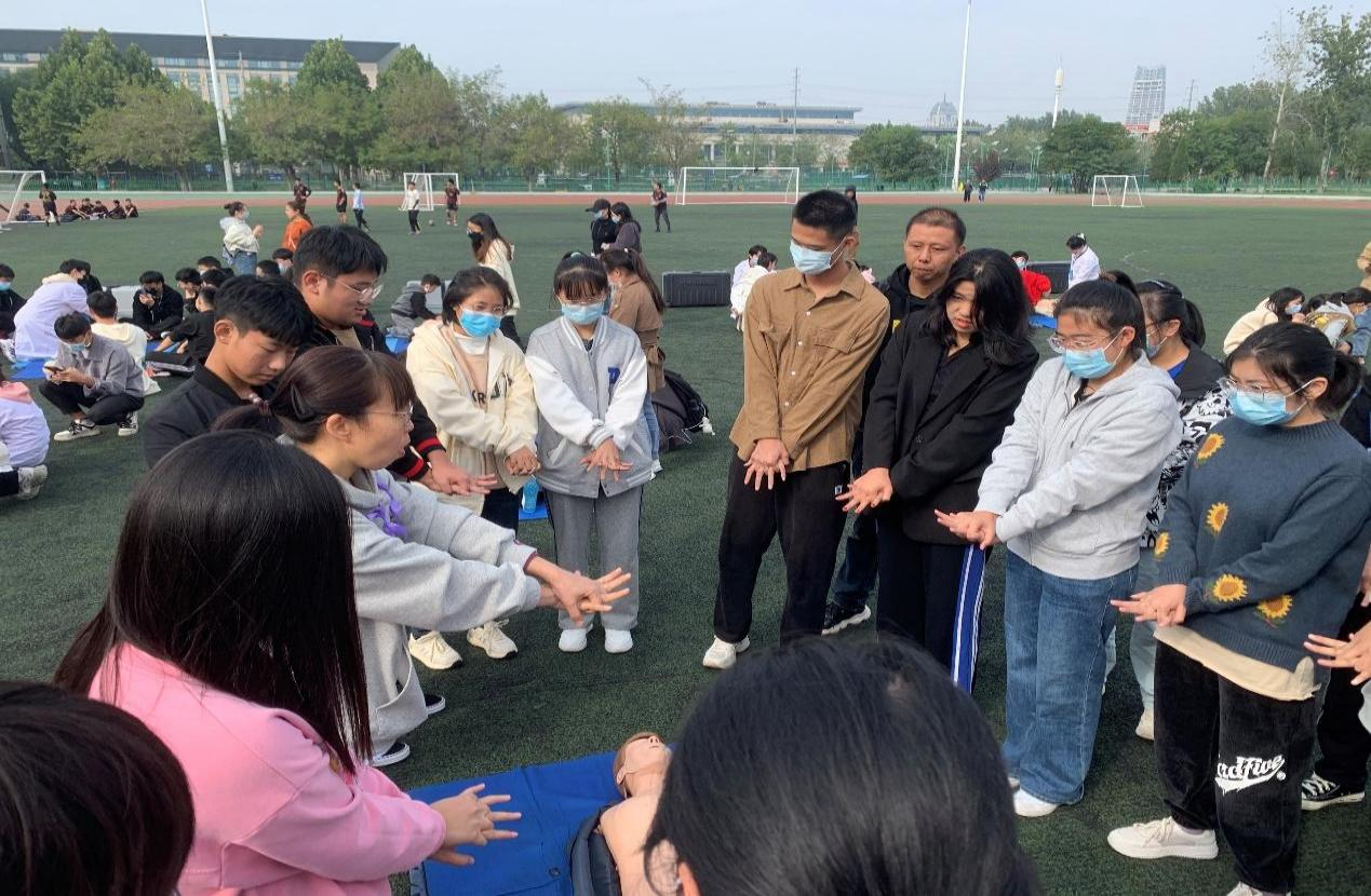 为更好地贯彻落实教育部相关文件精神,将学习健康知识、急救知识,尤其是心肺复苏操作纳入高校教育内容,10月7日,学校在南校区操场面向全校师生举办了心肺复苏培训推广活动。本次培训活动邀请了我校第三附属医院王丽娟、郭浩老师进行教学指导,共约有200名学生参加。