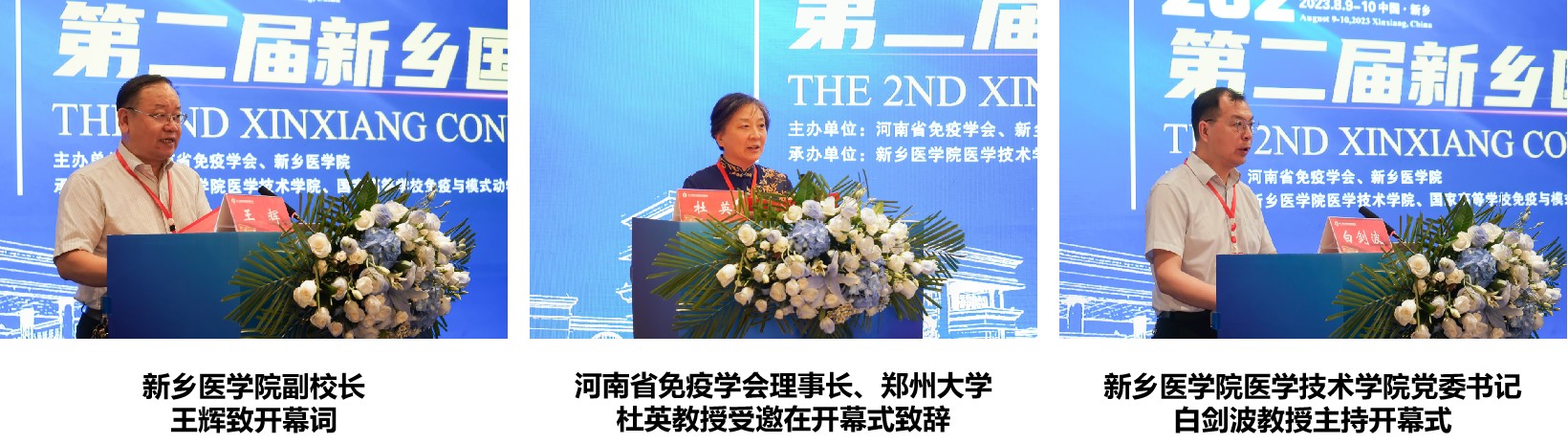 2023年8月9日-10日,在中国免疫学会的大力支持下,由河南省免疫学会和华亿在线手机版(大中国区)联合主办,华亿在线手机版(大中国区)医学技术学院、国家高等学校免疫与模式动物学科创新引智基地、河南省免疫与靶向药物重点实验室承办的第二届新乡国际免疫学论坛顺利召开。本次论坛特别邀请河南省免疫学会理事长杜英教授、河南省免疫学会秘书长李付广教授出席开幕式,共计300余人参与了本次会议。开幕式由华亿在线手机版(大中国区)医学技术学院党委书记白剑波主持。