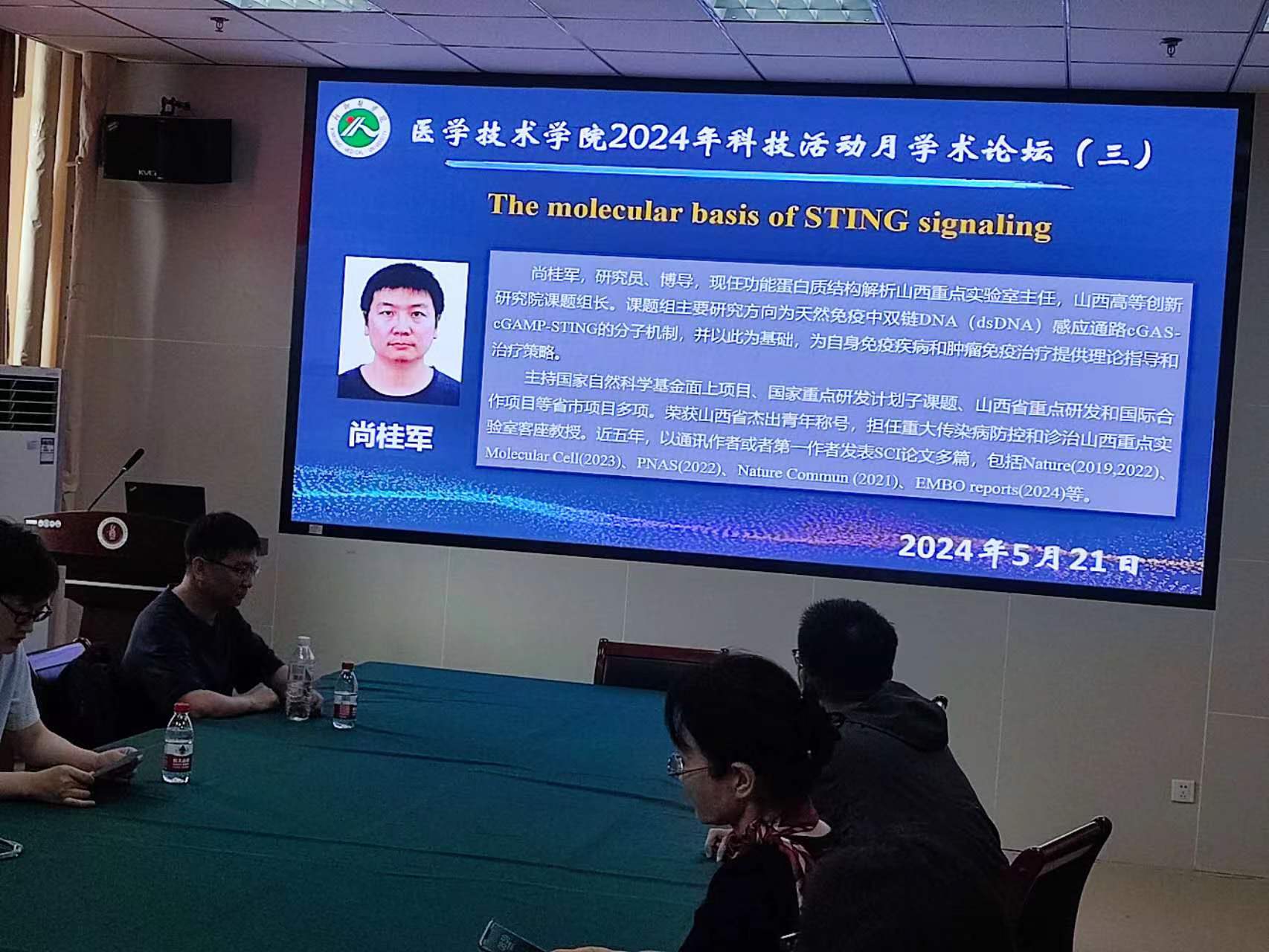 为进一步拓宽学术视野,5月21日上午我院邀请山西高等创新研究院尚桂军研究员来校进行学术交流,在科技楼404会议室做了“The molecular basis of STING signaling”的学术报告。报告会由副院长杨波主持,学院部分教师与研究生到会学习交流。