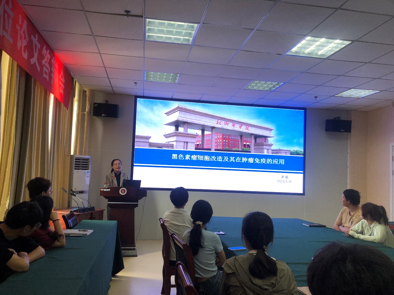 黄蓉博士在以“黑色素瘤细胞改造及其在肿瘤免疫中的应用”为主题的研究中,首先探讨了黑色素瘤细胞系B16F10中敲除黑色素生物合成途径关键酶-酪氨酸酶(Tyr)对肿瘤微环境中免疫细胞,尤其是T细胞免疫浸润的影响及其机制。随后,她介绍了在黑色素瘤Yumm1.7中稳定表达ZsGreen细胞系的构建,并探讨了其在肿瘤相关巨噬细胞吞噬功能研究中的应用。