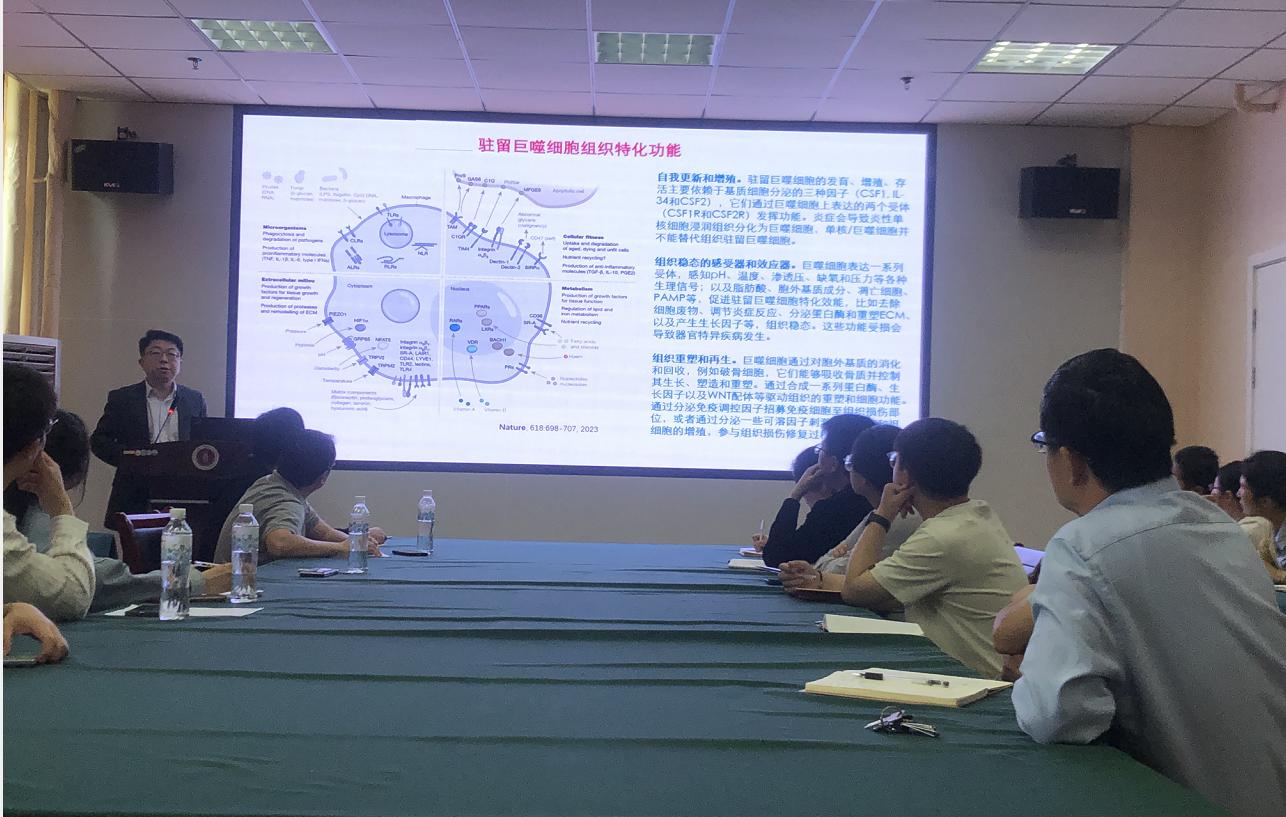 为加强学术交流、开拓学术视野,落实学校科技活动月活动,2024年5月10日上午,我院邀请浙江大学唐宏教授来校进行学术交流。唐宏教授以“组织驻留巨噬细胞在炎性反应中的调节作用机制”为题为我院师生做了专题报告,学院部分教师和研究生参加了本次报告会。
