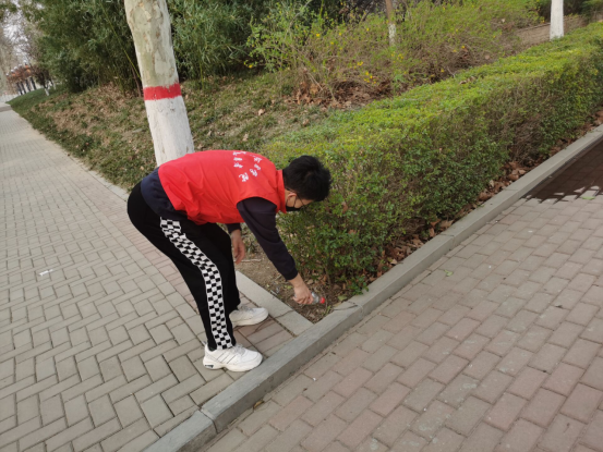 3月23日上午学院“大学生志愿者”对北校区内散落的塑料袋、烟头、果皮等杂物进行清扫,大家斗志昂扬,精神饱满,同学们不仅捡拾了果园、草坪、道路上的垃圾,还对周边道路上、角落里的垃圾进行了仔细清扫。