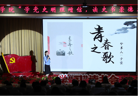 5月25日晚,由校党委宣传部主办的“学党史明理增信,读史书崇德力行”学习读书会决赛暨学校党史学习教育宣讲团(学生组)首场大型公开宣讲会在学校第一报告厅举行。宣讲会上,我院2020级于莹同学为大家分享了红色书籍《青春之歌》,并取得了二等奖的好成绩。