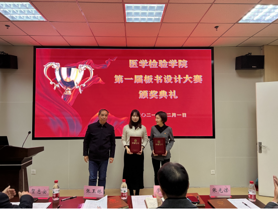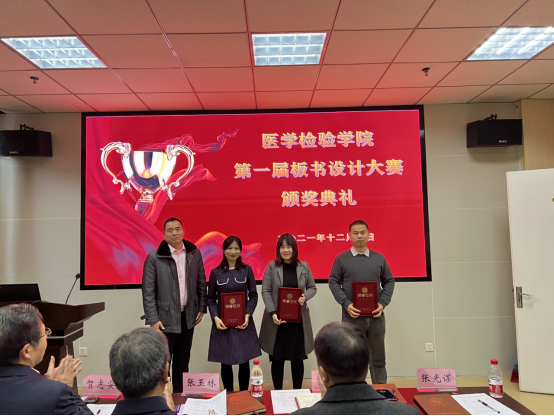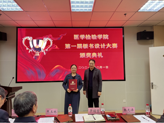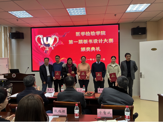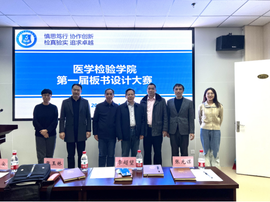 12月1日下午,医学检验学院第一届教师板书设计大赛决赛在检验学院会议室举行,经过初赛选拔出来的11位选手进入了决赛。大赛邀请了教务处副处长李超堃教授、学校督导组张玉林教授、张光谋教授、医学检验学院贺志安教授、千智斌教授、两位检验专业学生作为评委。学院领导班子和全体教师观摩了比赛。