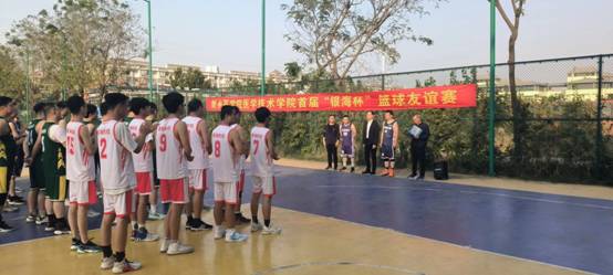 为丰富教职工业余文化生活,增强教职工的凝聚力和战斗力,活跃教职工的文化生活,展示教职工团结向上、勇于拼搏的精神面貌,以良好的精神状态投身于本职工作。医学技术学院工会不断创新工会工作,10月14日首届“银海杯”篮球友谊赛在南校区篮球场隆重开幕,本次比赛共有来自医学技术学院代表队、学校五所附属医院组成的附院联队、红旗区政府机关代表队和银海实验室代表队共四支代表队。新乡市红旗区政府副区长雷华文、医学技术学院党委书记白剑波、新乡市银海医学检验有限公司总经理丁诗龙出席开幕式,开幕式由学院党委副书记吴子钊主持。