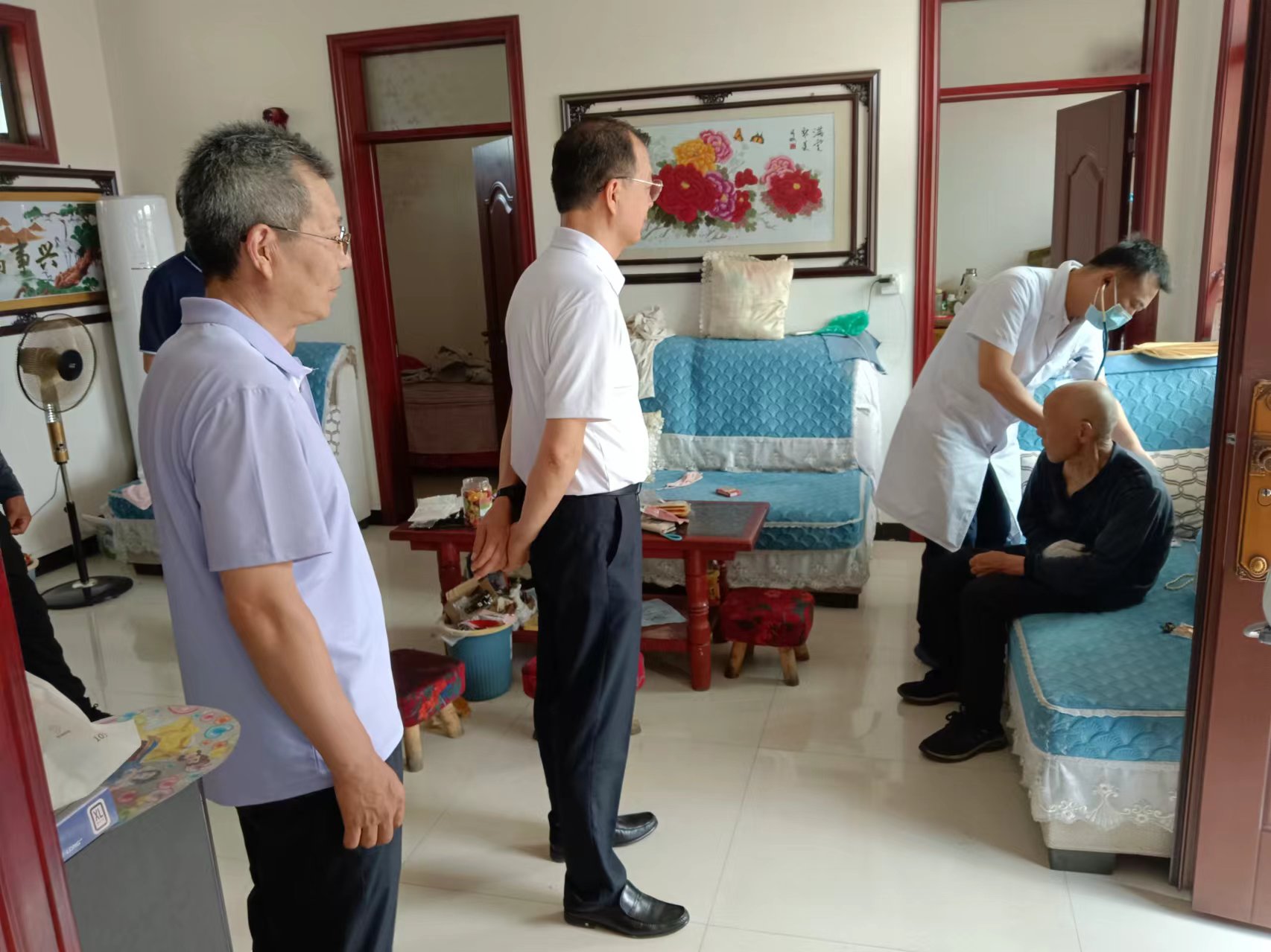 活动过程中,党员和医护专家与村民们亲切交流,倾听他们的需求和心声,解答他们在医疗方面的困难和问题。当他们了解到有个别年纪较大、行动不便的村民无法来到义诊现场,便不顾疲劳和炎热,主动“上门”义诊。村民白龙因为脑梗后遗症等疾病行动不便,神经内科和心内科医生根据其近日状况分析病情,指导用药,康复科医生对其康复治疗给出具体建议;另一村民患高血压和骨性关节炎疾病多年,目前双下肢无法站立,活动疼痛明显,严重影响正常生活,为进一步改善症状,心血管内科、神经内科和康复科医生集体会诊,明确病因,指导康复锻炼和用药,将温暖和健康送到每一位需要帮助的村民家中。此次“医心向党健康扶贫进山村”主题党日活动,不仅为山村的群众提供了急需的医疗服务,还传递了党的温暖与关怀,增强了党员的服务意识和责任感。活动结束后,村民们纷纷表示感谢,称赞这是真正的“为民服务”行动。