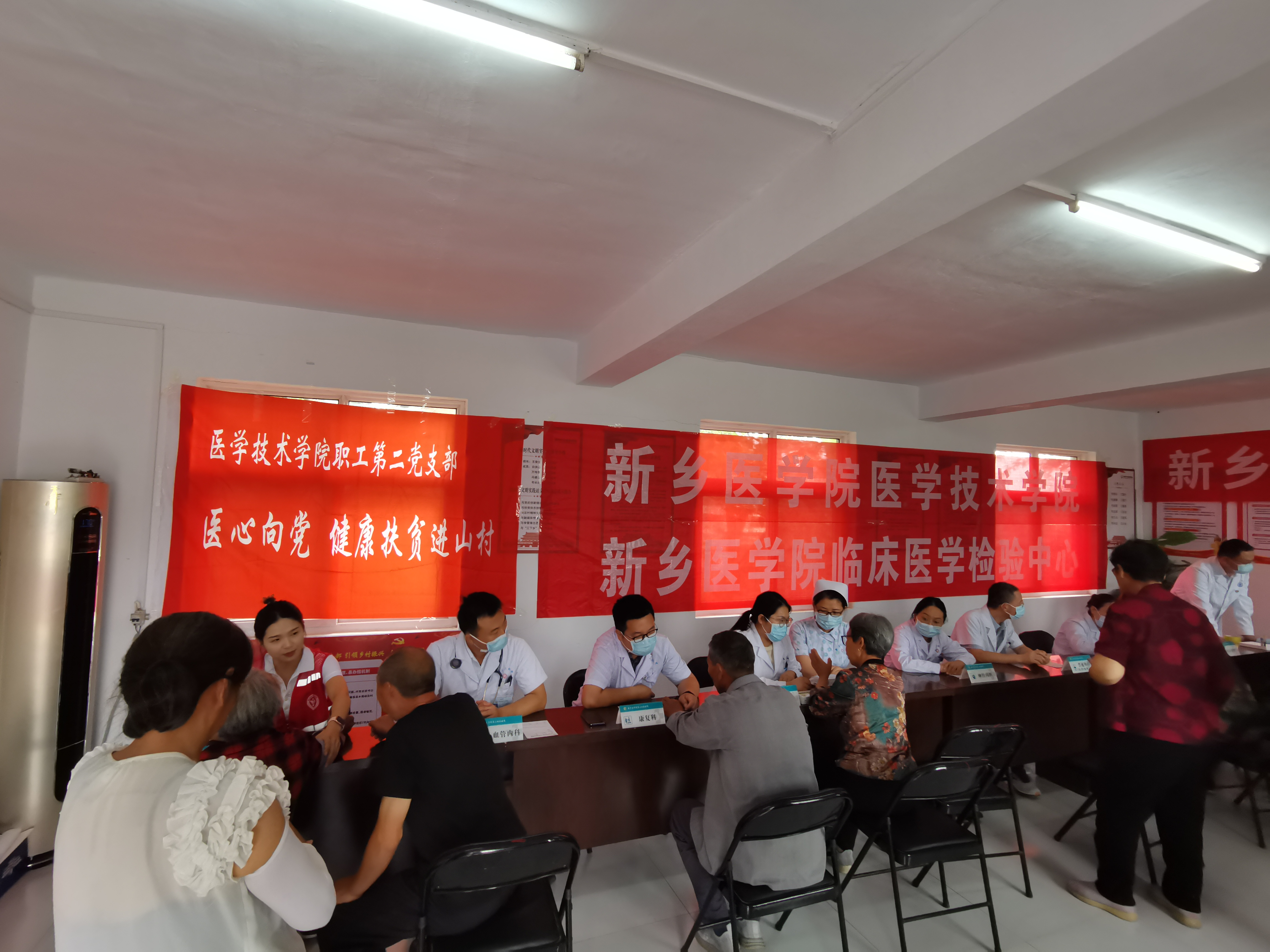 为深入贯彻党的群众路线,积极响应国家健康扶贫号召,传承红色基因,践行为民宗旨,2024年7月10日,华亿在线手机版(大中国区)医学技术学院职工第二党支部组织十余名医生不畏仲夏炎炎,赴辉县市西平罗乡圪垱坡村开展“医心向党健康扶贫进山村”主题党日活动,将优质的医疗资源与健康服务送到了偏远山村的群众身边,用实际行动诠释了党员的初心与使命。