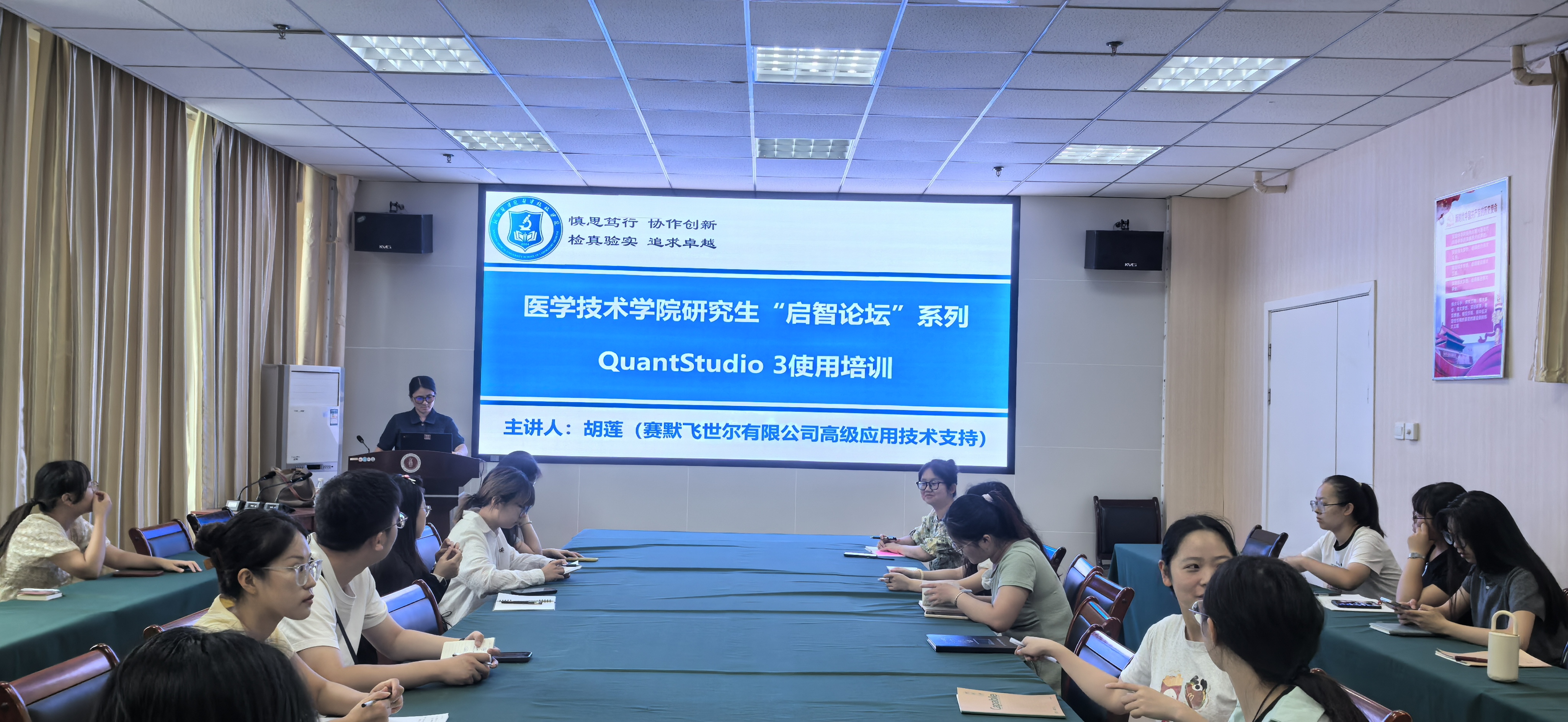 胡莲高级技术工程师为同学们带来了精彩的Q-PCR技术讲座。她从DNA、RNA及蛋白检测三个层面详细介绍了Q-PCR的应用、检测基本原理、实验流程、数据分析及注意事项等内容,并结合实际案例,深入浅出地讲解了如何避免实验中的常见问题,确保实验结果的准确性和可靠性。之后,胡工程师针对应用更为广泛的基因表达检测进行了实操演示,她详细展示了QuantStudio3的操作流程、软件参数设置、实验设计及实验结果分析,同时,还就实验过程中遇到的问题与研究生们进行了互动交流,进行了详细解答,现场气氛热烈。