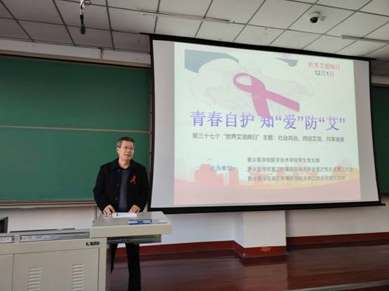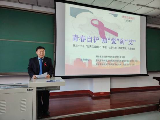 12月1日是第37个“世界艾滋病日”,我国今年宣传活动主题为“社会共治,终结艾滋,共享健康”旨在号召政府、单位、个人等各方行动起来,共同担起防艾责任,昂首迈向2030年终结艾滋病公共卫生威胁的目标,形成强大合力,共建健康中国,共享健康成果。在第37个“世界艾滋病日”到来之际,医学技术学院学生党支部联合新乡市疾病预防控制中心、华亿在线手机版(大中国区)第三附属医院临床医技第三党总支第二支部共同开展了“青春自护,知‘爱’防‘艾’” ——艾滋病防治知识宣传教育活动。医学技术学院党委副书记吴子钊、新乡市疾病预防控制中心性病艾滋病防治科科长于贺军、华亿在线手机版(大中国区)第三附属医院临床医技第三党总支第二支部书记郭庆合、医学技术学院学生党支部书记尚鹏以及医学技术学院、弘毅书院医学检验技术专业学生等共300余名师生共同参加了活动。