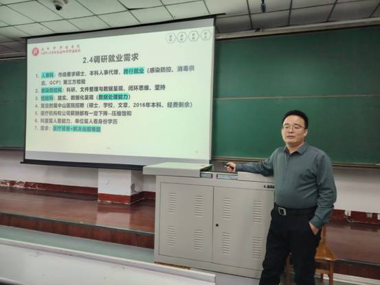 陈红军首先向同学们分享了个人的一些学习与工作经历,并结合个人学习体会和工作经验,向同学们介绍了医学检验技术专业的发展现状、前景以及就业趋势。讲座最后,他强调“打铁还需自身硬”,希望同学们在学好专业知识的同时,要积极参加课外活动,学习多项技能,全面发展,在激烈的社会竞争中,不断提高个人的竞争优势。