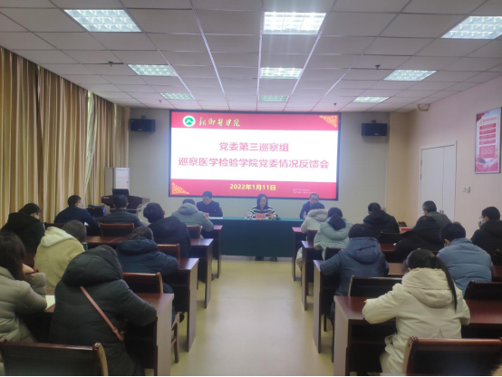 1月11日下午,党委第三巡察组巡察医学检验学院党委情况反馈会在科技楼404会议室召开,校党委委员、党委宣传部部长于晓欢,第三巡察组组长王鹏出席会议,学院班子成员、党支部书记、科级干部、高级职称教师及教师代表参加会议。医学检验学院党委书记白剑波主持会议。