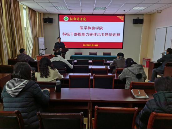 按照《医学检验学院“能力作风建设年”活动方案》和学校对我院巡查反馈意见整改工作要求,为进一步提升我院科级干部的整体素质、能力水平和优良作风,推进学院高质量发展,3月24日至28日,我院举办科级干部提能力转作风专题培训班。