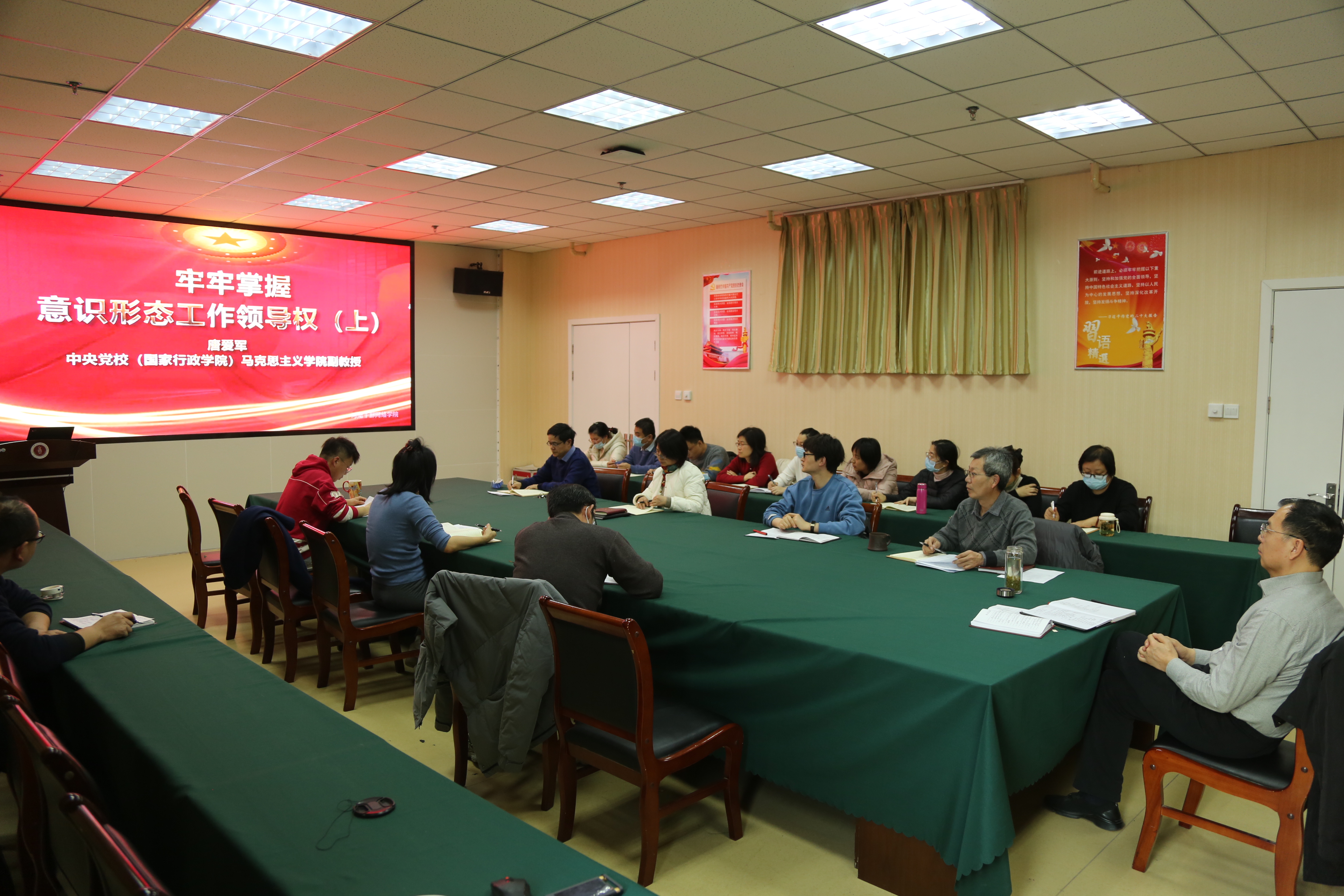 会上,第一议题学习《中共中央政治局召开专题民主生活会习近平主持会议并发表重要讲话》,同时集体收看了中央党校(国家行政学院)马克思主义学院副教授唐爱军主讲的《牢牢掌握意识形态工作领导权》的视频报告。学习后,大家进行了热烈的发言讨论。