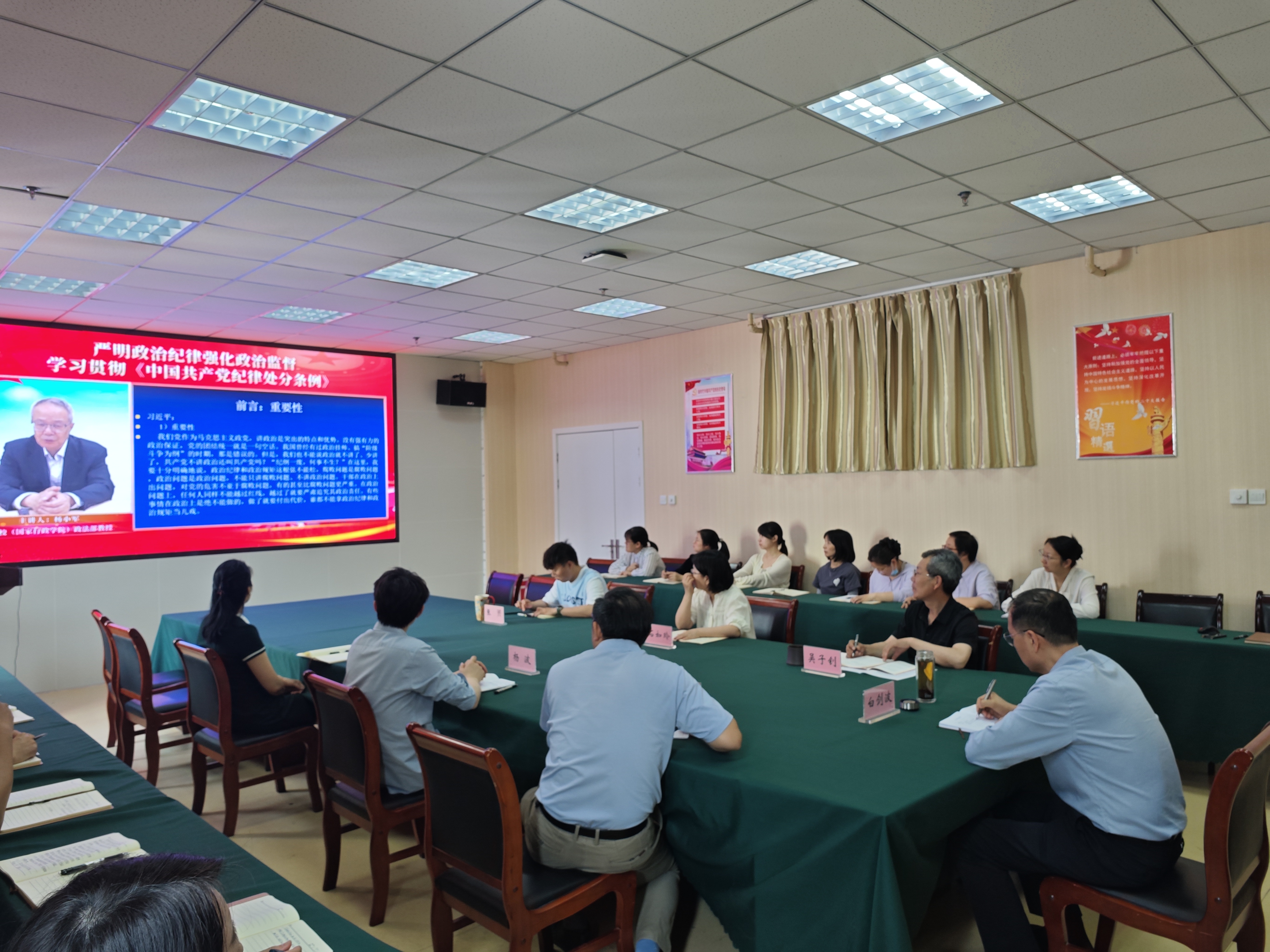 会上,参会人员集体学习中央党校政法部杨小军教授的《严明政治纪律强化政治监督学习贯彻<中国共产党纪律处分条例>》的宣讲视频,并观看警示教育片《持续发力纵深推进》第二集《政治监督保障》,自学了《中国共产党纪律处分条例》中关于党的政治纪律和组织纪律的相关内容。学习后,大家进行了热烈的发言讨论。