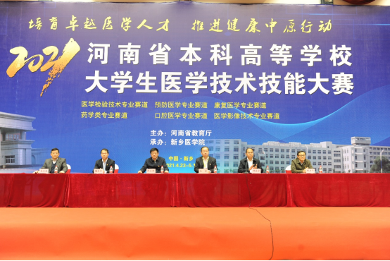 4月23日至4月24日,由河南省教育厅主办,我校承办的2021年河南省本科高校大学生医学技术技能大赛医学检验技术专业赛道在北校区体育馆开幕。河南省教育厅高教处处长张水潮,我校党委委员、副校长王辉、雒保军,医学检验学院院长朱小飞,参赛各高校领导和嘉宾出席开幕式。