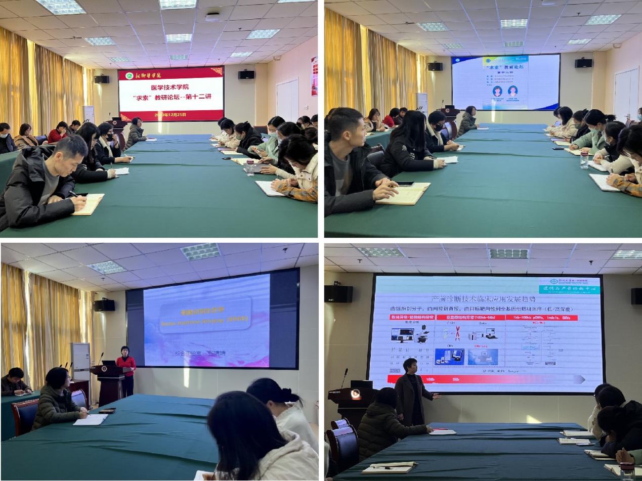 12月25日上午,我院第十二期“求索”教研论坛顺利举办。本次论坛主题为“专业技能培训心得分享”,邀请我院综合实验室张婧婧老师和临床免疫学教研室马淑君老师分享她们外出学习培训的收获与心得。论坛由石如玲副院长主持,各教研室主任及骨干教师参加了论坛。