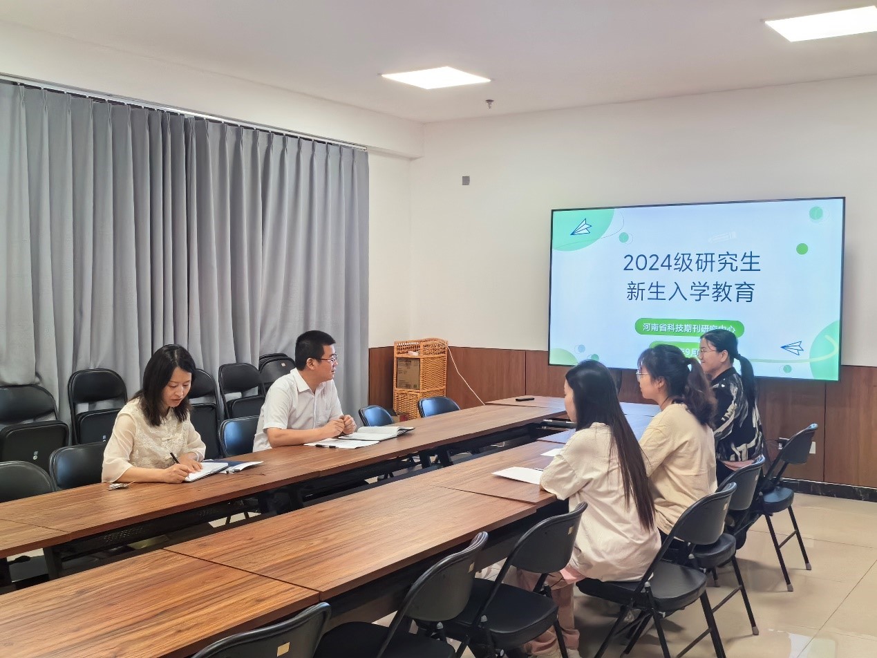 9月13号上午,河南省科技期刊研究中心在图书信息楼南楼223房间举行2024级研究生新生见面会。见面会由中心主任徐自超主持,研究生班主任范艳芬及全体2024级研究生参加会议。