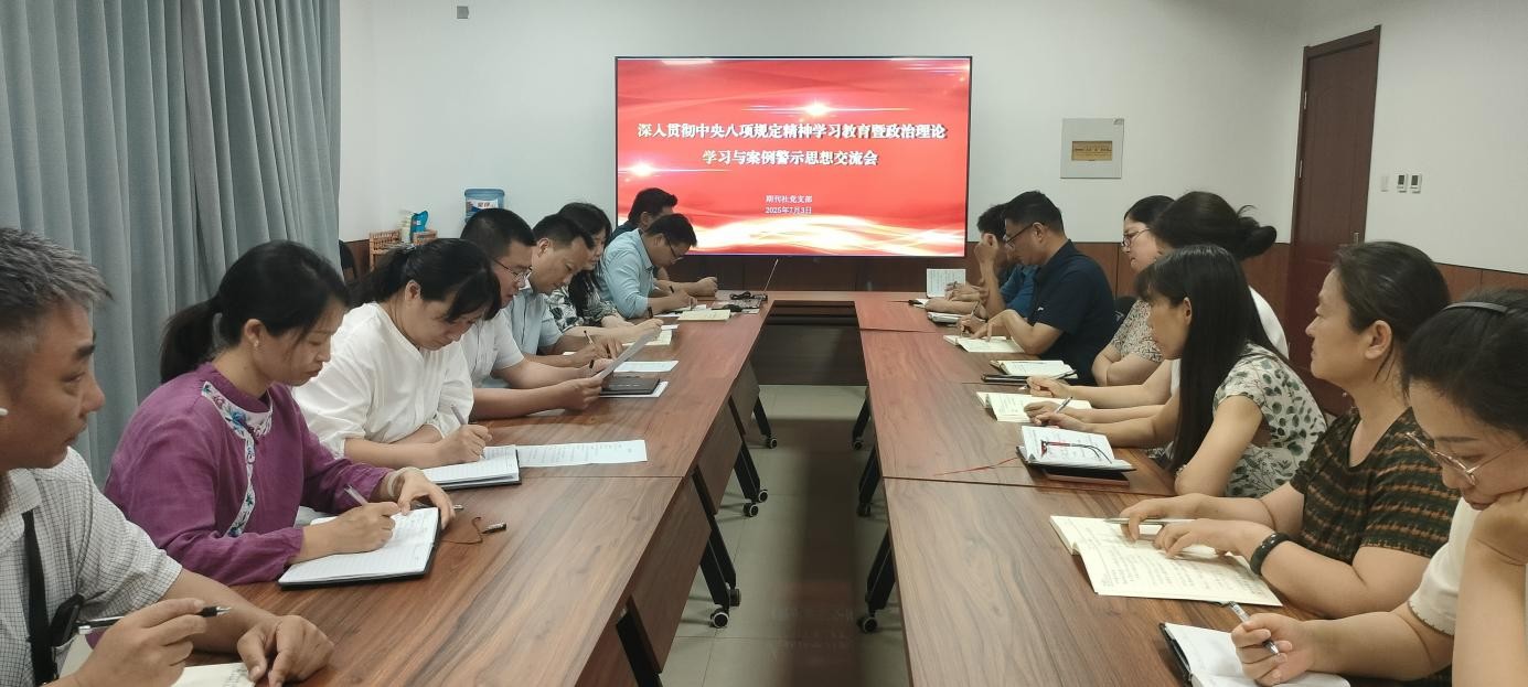 会上,大家共同学习了《习近平在中共中央政治局第二十一次集体学习时强调 坚持从抓作风入手推进全面从严治党 把新时代党的自我革命要求进一步落实到位》《习近平:加快建设教育强国》《习近平:团结奋斗是中国人民创造历史伟业的必由之路》以及《习近平关于加强党的作风建设论述摘编》第八章、第九章内容,并观看了专题教育片《八项规定改变中国》。随后开展了“案例警示思想交流会”,支部书记徐自超带领大家深刻剖析典型案例,参会人员结合自身工作实际,围绕案例进行了热烈的讨论。通过专题学习、案例剖析和交流研讨,大家更深刻认识到深入贯彻中央八项规定精神学习教育的重要性,纷纷表示要在行动上严格自律,时刻保持清醒头脑,自觉遵守中央八项规定。