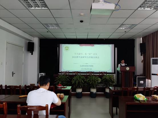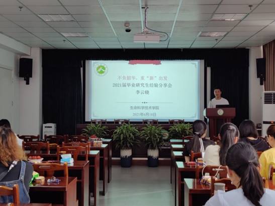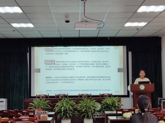 经验分享会由优秀考博或就业的毕业生分享他们的丰富经验。首先,是李云晓分享考博经验。他科研经历丰富,今年4月份申请到德国罗斯托克大学的博士研究生,他分别就选学校、联系导师和英语准备等方面给我们分享了很多经验,也提出了很多建议。他反复强调,英语表达流利程度非常重要,要提前准备雅思或托福。其次,是袁昕给大家分享考博经验。她今年5月份考入北京市军事科学院攻读博士学位,她分别就考博准备、研读招生简章和招生目录、选择学校报名、撰写个人简历和发邮件及准备复试等几方面与在座的同学们分享了备考经历和心得体会。最后鼓励大家报考时要有自信并祝愿大家都能心随所愿。最后一位经验交流者是签约到华兰生物公司的侯婉毅,她就自身的求职经历,推荐了一些实用的招聘信息,并强调了求职心态与定位的重要性,她从就业前准备,了解用人单位以及面试三方面给我们分享了她的就业体会,告诉我们要有自信,也要学会随机应变。