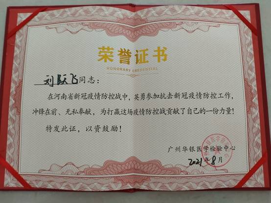 据悉,我校生命科学技术学院2021级硕士研究生刘跃飞同学,在疫情期间身处郑州市隔离区之外,自7月31日晚至今,先后到河南省职工医院PCR实验室、郑州市金水区总医院方舱实验室做志愿服务,协助进行新型冠状病毒的PCR核酸检测,作为一名共青团员,冲锋在前,利用自己的专业背景优势,以实际行动为抗疫斗争的胜利贡献了自己的力量,为我校赢得了良好的社会声誉。(文/图管丽红)