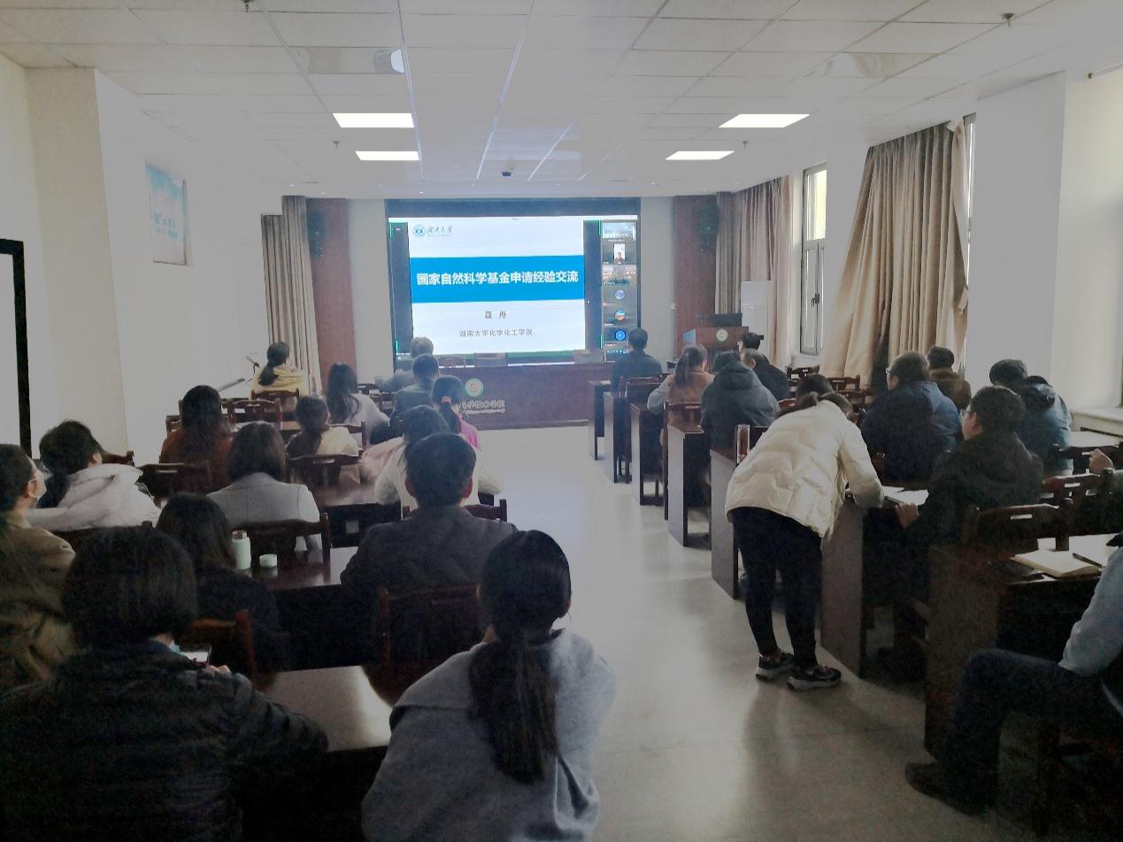 为做好我院2022年国家自然科学基金申报工作,有效提升项目申请书的数量和质量,我院教师于11月26日下午在科技楼510会议室参加国家自然科学基金申请经验交流会。本次交流会由国家自然科学基金优秀青年科学基金、国家自然科学基金杰出青年科学基金获得者,长江学者,湖南大学化学化工学院聂舟教授在线分享其申请及评审国家自然科学基金的经验。