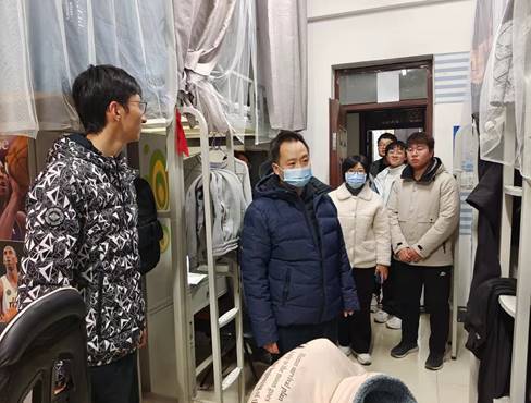 为全面排查学生宿舍安全隐患,促进宿舍文明建设,保护学生人身安全,12月27日下午,生科与医工党委副书记庞强强和学生办公室主任史培培同学生干部一起走访了我院学生宿舍,检查并提醒同学们注意宿舍卫生及用电安全。
