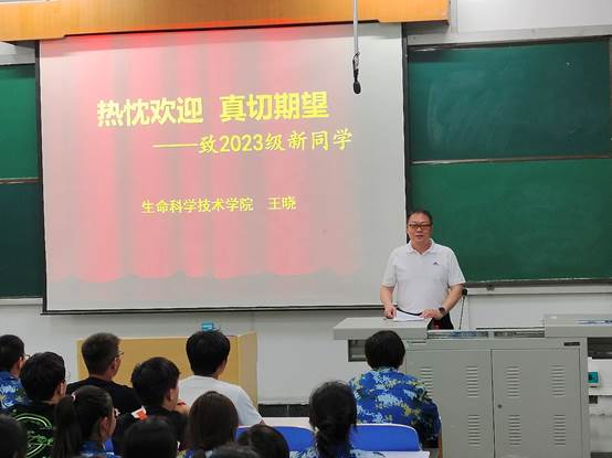 9月4日晚,生命科学技术学院2023级新生“开学第一课”在南校区博济楼2111教室举行,学院党委书记王晓以《热忱欢迎 真切期望》为题,为学院2023级全体本科生及研究生讲授“开学第一课”,辅导员刘晨主持。