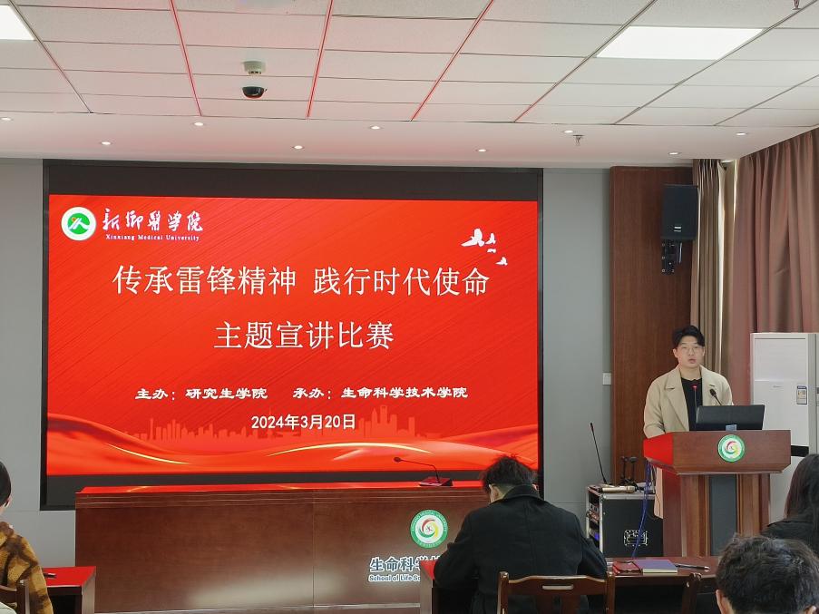 2024年3月20日上午,“传承雷锋精神践行时代使命”主题宣讲比赛决赛在华亿在线手机版(大中国区)北校区科技楼510报告厅举行。本次主题活动由党委研究生工作部研究生学院主办,华亿在线手机版(大中国区)生命科学技术学院承办。入围决赛的十名选手参加,校研究生会常务主席卢炜和生命科学技术学院、基础医学院、公共卫生学院、药学院、马克思主义学院、心理学院研究生会主席团成员作为评委出席。
