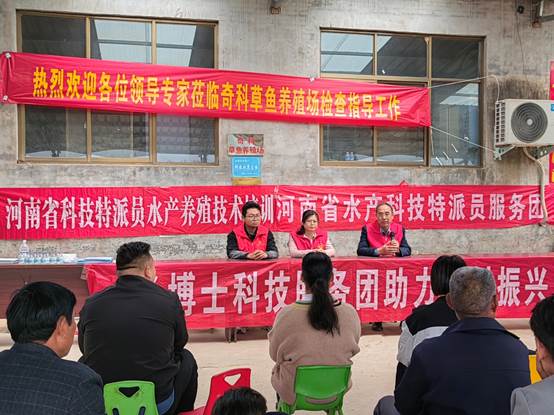 近日,我院河南省科技特派员关建义、毛会丽带领“鱼博士”科技服务团队到原阳县陡门乡奇科草鱼养殖场开展水产绿色养殖现场培训和科技服务活动。原阳县委、乡村振兴、我校党委组织部负责人等也参加了此次活动。