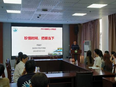 周晨妍副院长以“珍惜时间,把握当下”为主题,告诫同学们,珍惜眼前的大好时光,充分利用一切时间多读书,多学习,努力充实自己,不让自己的人生留下遗憾。