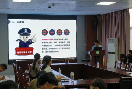 张必超老师从宿舍、实验室、网络、交通等多个方面介绍校园安全,提醒研究生注意保护自身安全,积极维护校园安全。