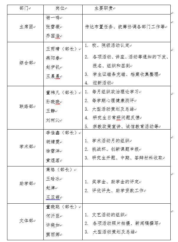 时光荏苒,又是一年换届时。2024年10月9日上午,在科技楼510会议室举办我院研究生会换届大会。出席本次大会的有我院研究生与学位点建设办公室主任管丽红老师、第七届研究生会主席团和成员代表及参加竞选的研究生们。