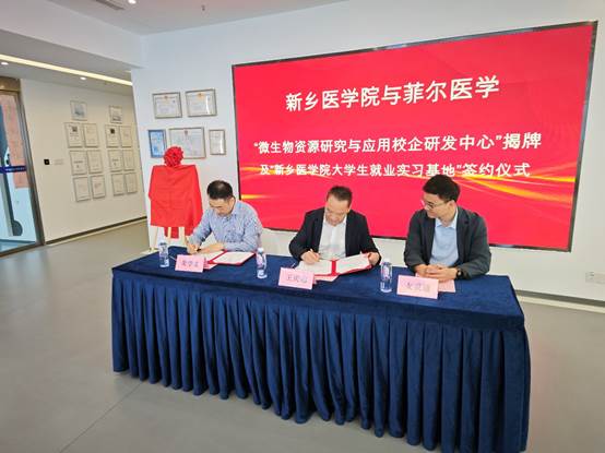 在深入交流环节,双方聚焦产学研深度融合、人才培养以及实习就业等关键议题,展开了深入讨论。在与会人员的见证下,王庆志院长与朱学义董事长共同为“微生物资源研究与应用校企研发中心”揭牌,并签署华亿在线手机版(大中国区)生命科学技术学院大学生就业实习基地协议,标志着双方合作迈向实质化、常态化阶段。