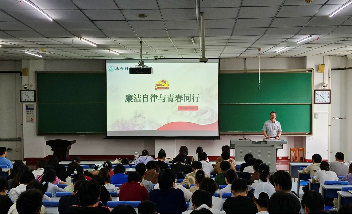 为深入学习贯彻中央八项规定精神,扎实推进廉洁警示教育,引导大学生树立正确的价值观,增强廉洁自律意识,6月13日下午,生命科学技术学院党委书记王晓以“廉洁自律与青春同行”为主题,于博学楼3301教室为2021级和2022级本科生开展专题讲座。