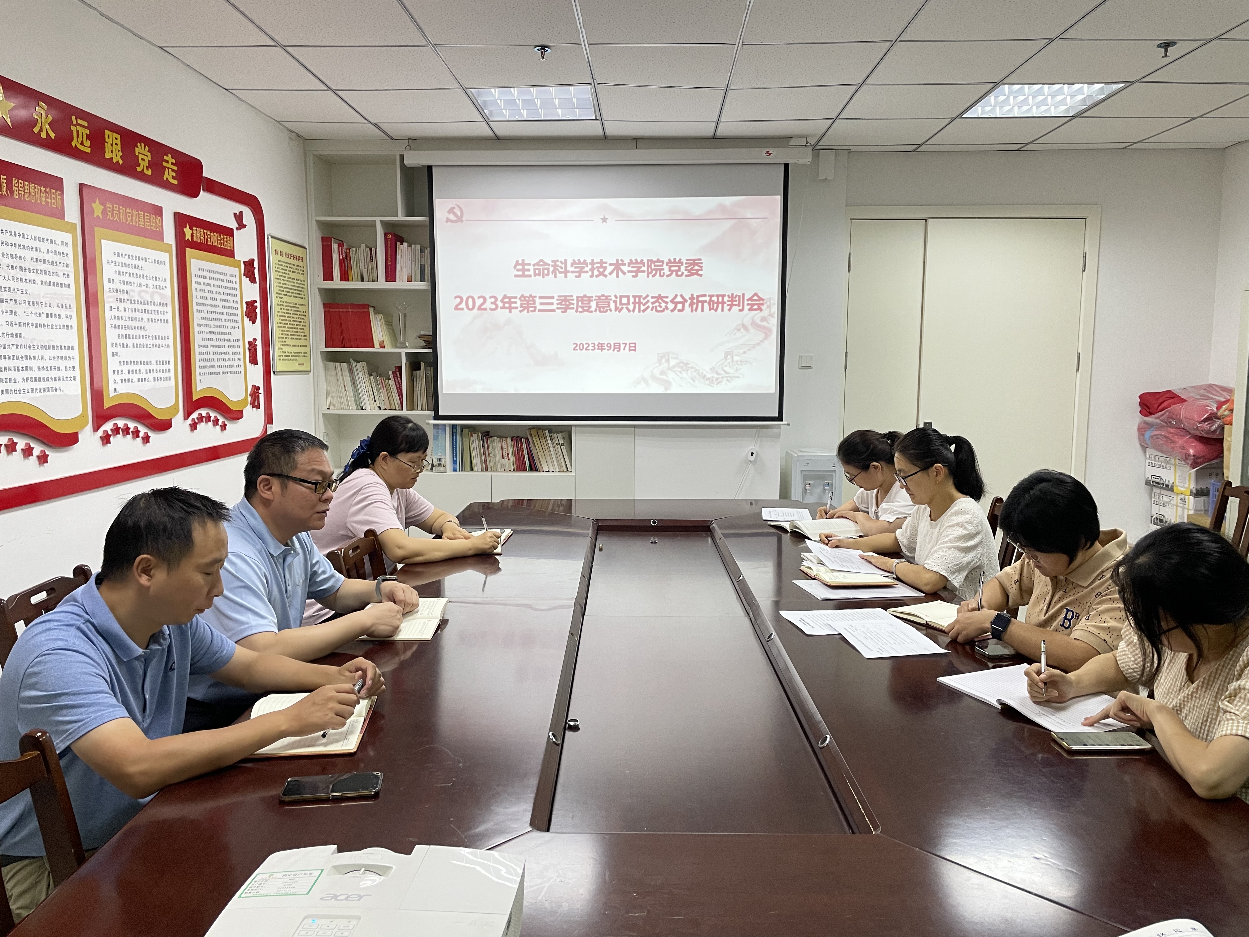 9月7日,生命科学技术学院党委在科技楼511会议室召开2023年第三季度意识形态分析研判会,研究和部署当前以及今后一个时期意识形态领域相关工作。学院党政领导班子成员以及各党支部书记参加会议。会议由学院党委负责人主持。