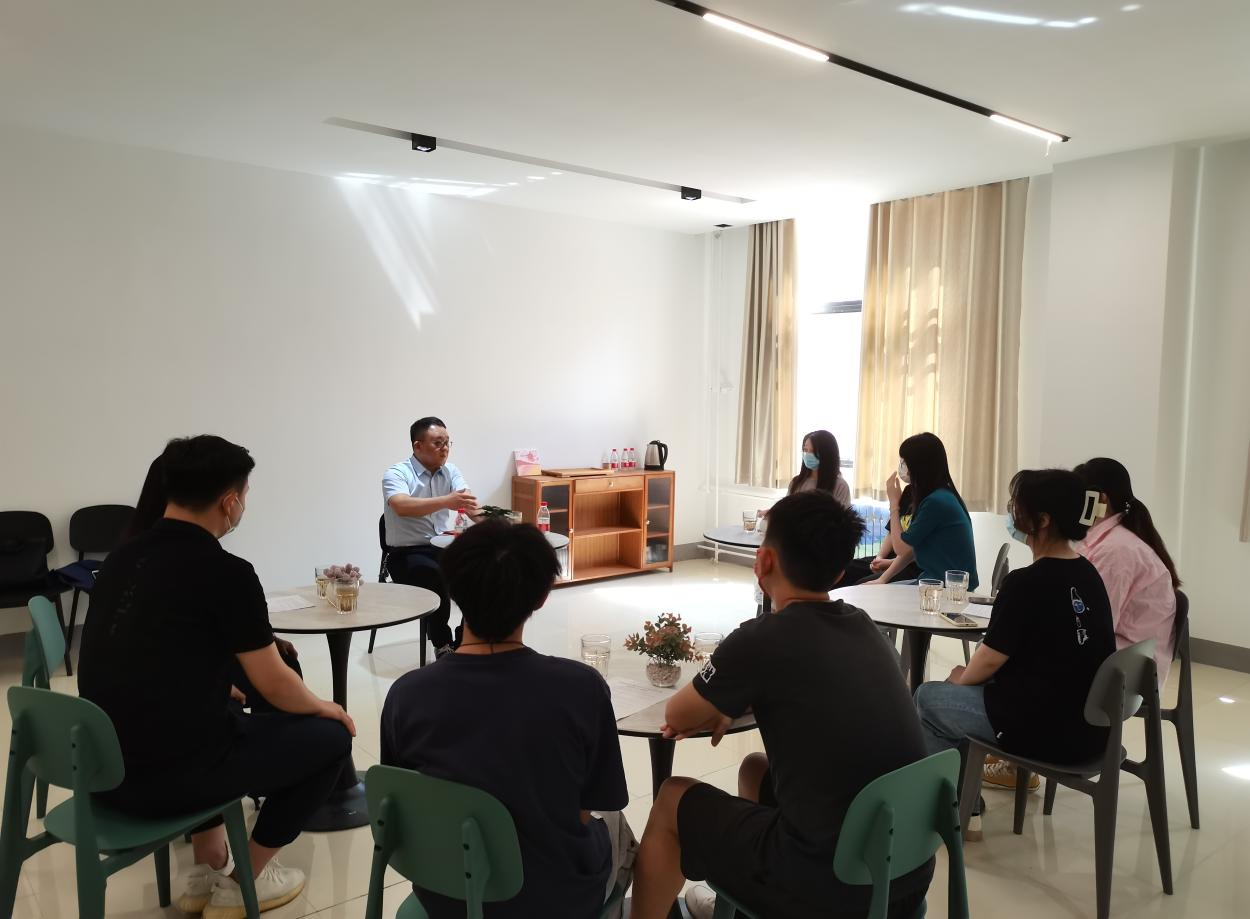 揭牌仪式后,孙翔处长来到青创空间接受师生访谈,与明德书院学生和辅导员进行面对面交流。师生们结合学生职业生涯规划指导和个人职业生涯规划方面的困惑等方面对孙处长进行访谈,孙处长一一为大家进行解答。