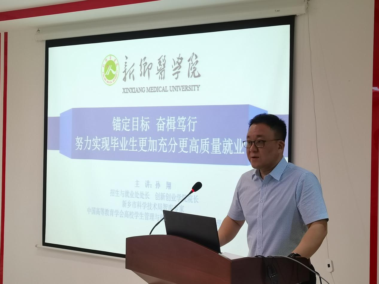随后,由孙翔处长作题为《锚定目标 奋楫笃行—努力实现毕业生更加充分更高质量就业》讲座。孙处长首先分析了当前的就业形势,为同学们解读了国家出台的大学生就业帮扶政策和学校助力学生们就业的相关举措,建议同学们转变就业思路,先就业再择业。随后,他号召全体同学们要珍惜时光,勤学苦读,提升自身实力,利用好大学生就业服务平台,做好职业规划。最后,孙处长指出,老师们也应当引导学生树立起正确的职业观、价值观,同学生们紧密配合,共同努力,做好就业工作。